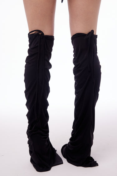 Bucaneras de microfibra negra con jareta en delantero y tiritas detrás para ajustar.