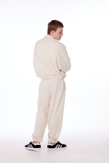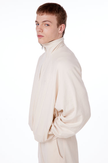 Hoodie de rústico color crema. Medio cierre desmontable. Bordado BLKMBA en frente izquierdo. Bolsillos en laterales. Ribb en puños. Cintura elastizada.