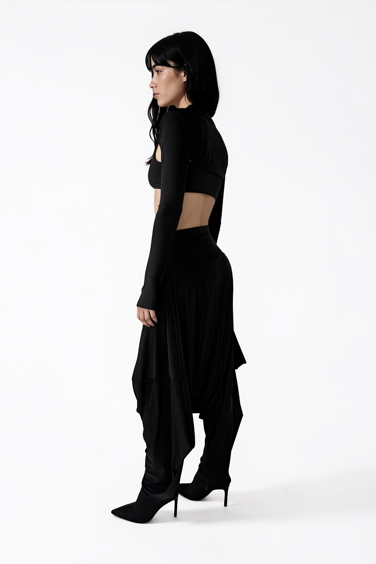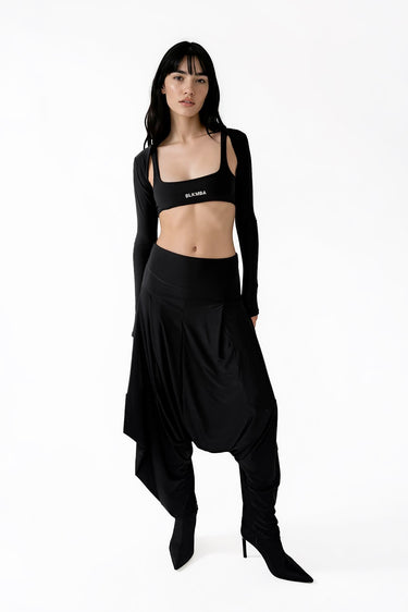 Babucha de microfibra negra. Cuenta con dos bolsillos en cada lado. Tela super adaptable al cuerpo