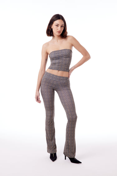 Pantalón estilo bootcut de polisoft con estampa celebrity. Prenda anatómica.