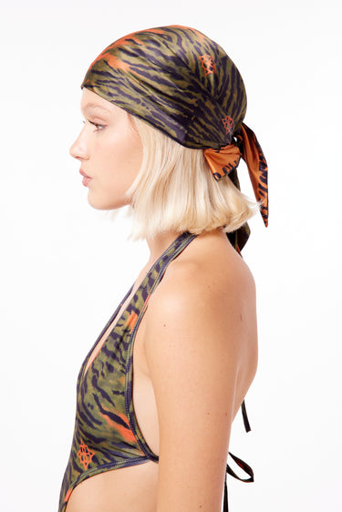 Monoprenda de polysoft estampado tigresa verde, abierto en espalda. Tejido super anatómico y suave)