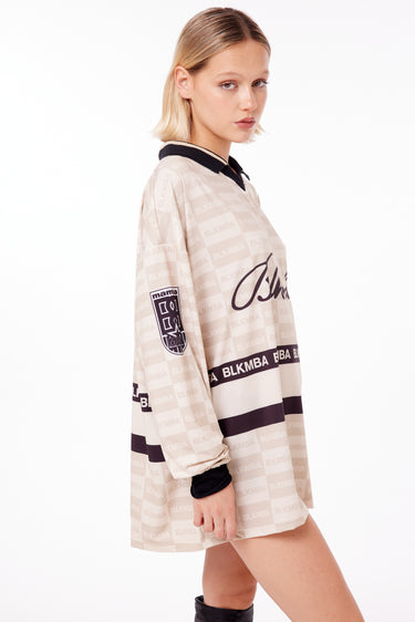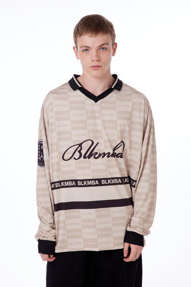 Camiseta oversize de polysoft manga larga. Cuello en V tejido. Escudo Mamba Soccer en manga y logo blkmba en centro.