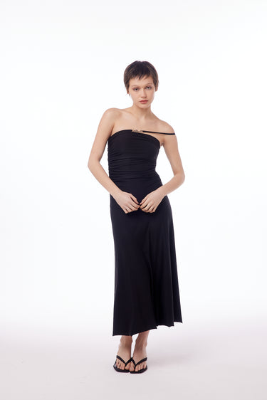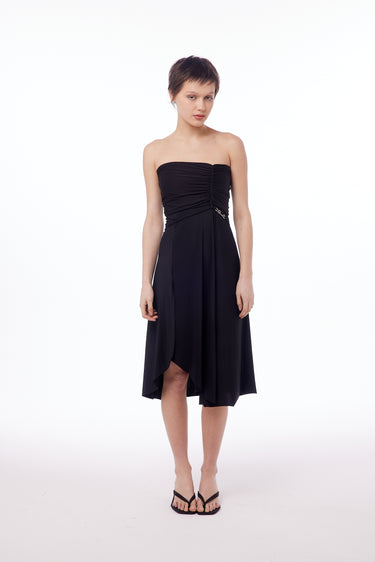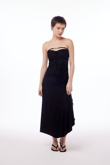 Vestido de microfibra con frunce en delantero y trasero con forrería interior embolsa. Tajo en lateral.